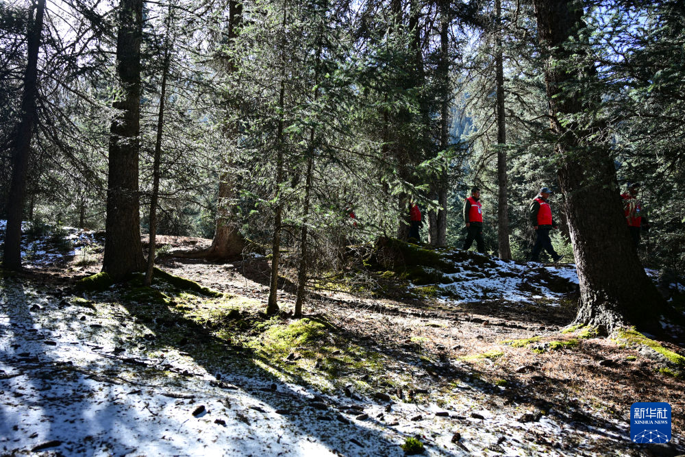 11月8日,护林员在青海省海北藏族自治州祁连县阿咪东索林区内巡护。 新华社记者 齐芷玥 摄