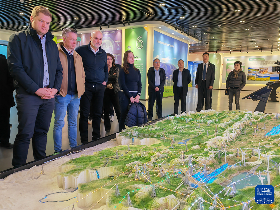 当讲解员介绍“板上发电、板下种草、板间养殖”的生态光伏模式时,代表团成员们围拢过来,目光专注地观看介绍短片。大家纷纷表示,这种模式实现了生态保护与产业发展的完美融合,很有智慧。
